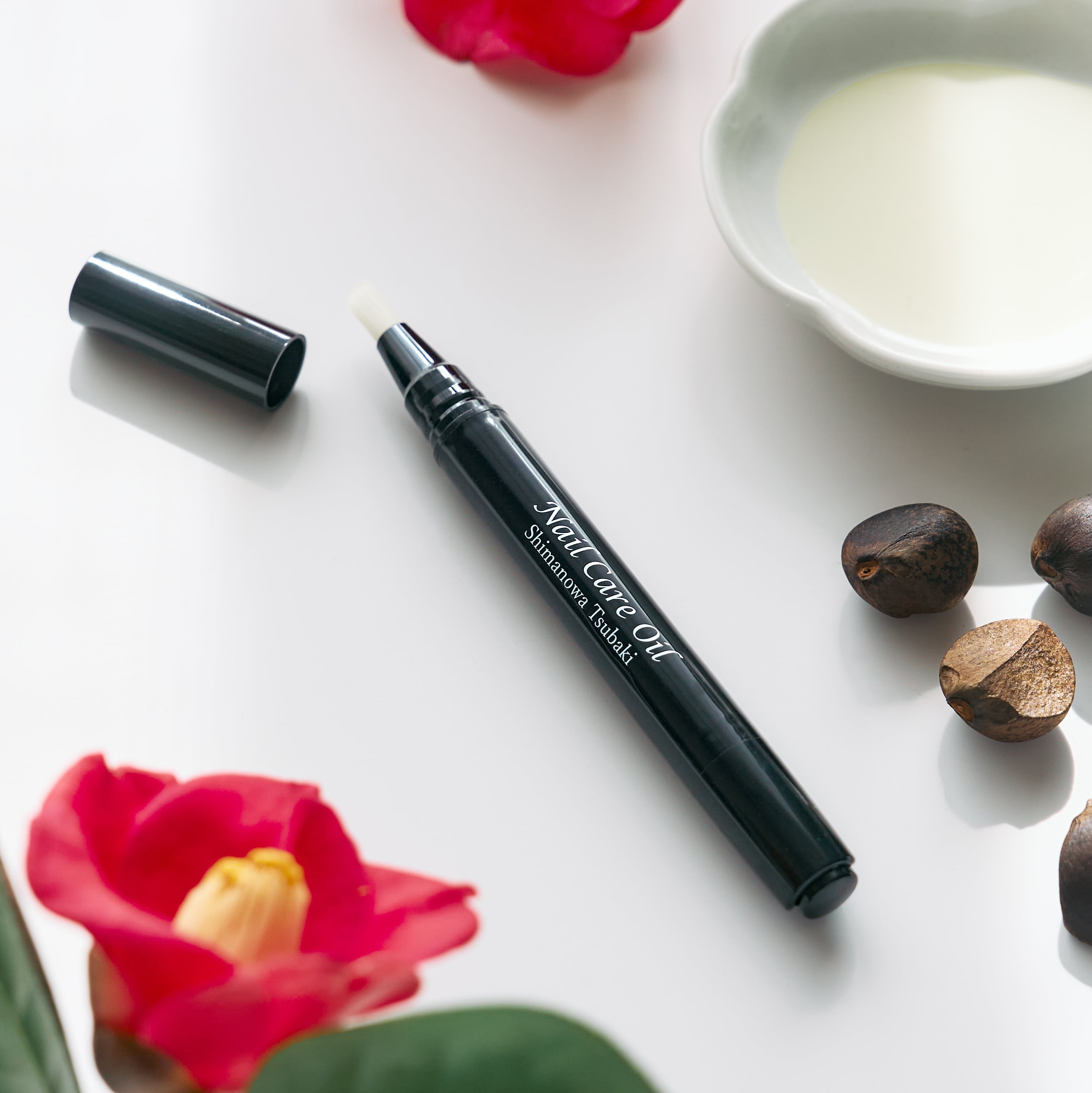 江戸時代より愛される利島藪椿100%を使用したネイルオイル。Camellia oil.